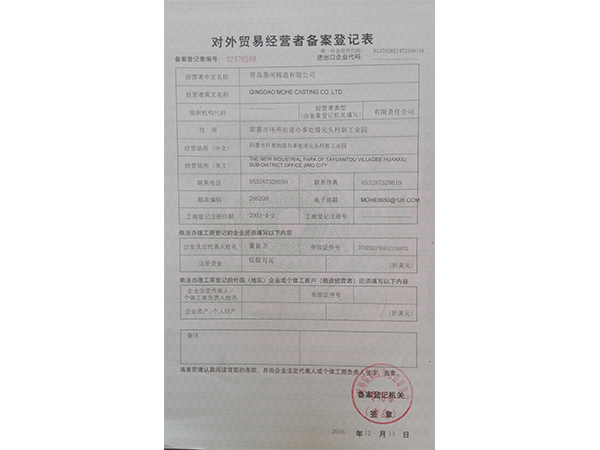 • 对外贸易经营者备案登记表
